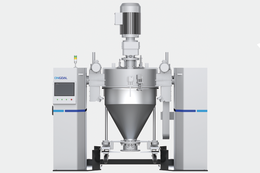 混合機帶除塵和吹掃口,能有效降低混合后筒體內(nèi)物料的殘留率,且能一定程度上清理筒體,減少清潔時間。